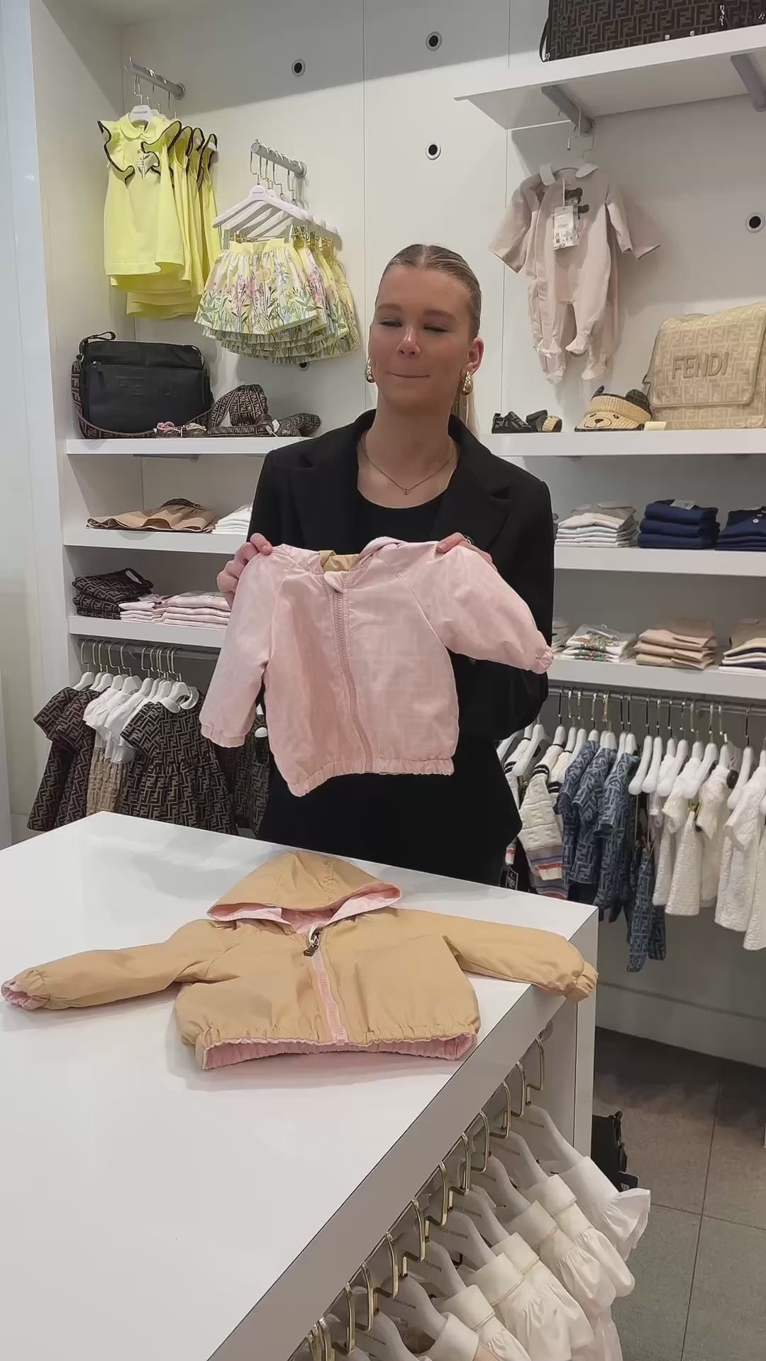 Erleben Sie pure Eleganz mit dem Fendi Baby-Übergangsmantel in zartem Hellrosa. Dieser raffinierte Mantel hüllt Ihr Kleines in eine warme Umarmung, perfekt für den Winter 2025. Der luxuriöse Stoff strahlt Qualität und Handwerkskunst aus, mit dezenten Details Fendi-Details, die das Design zu etwas ganz Besonderem machen.