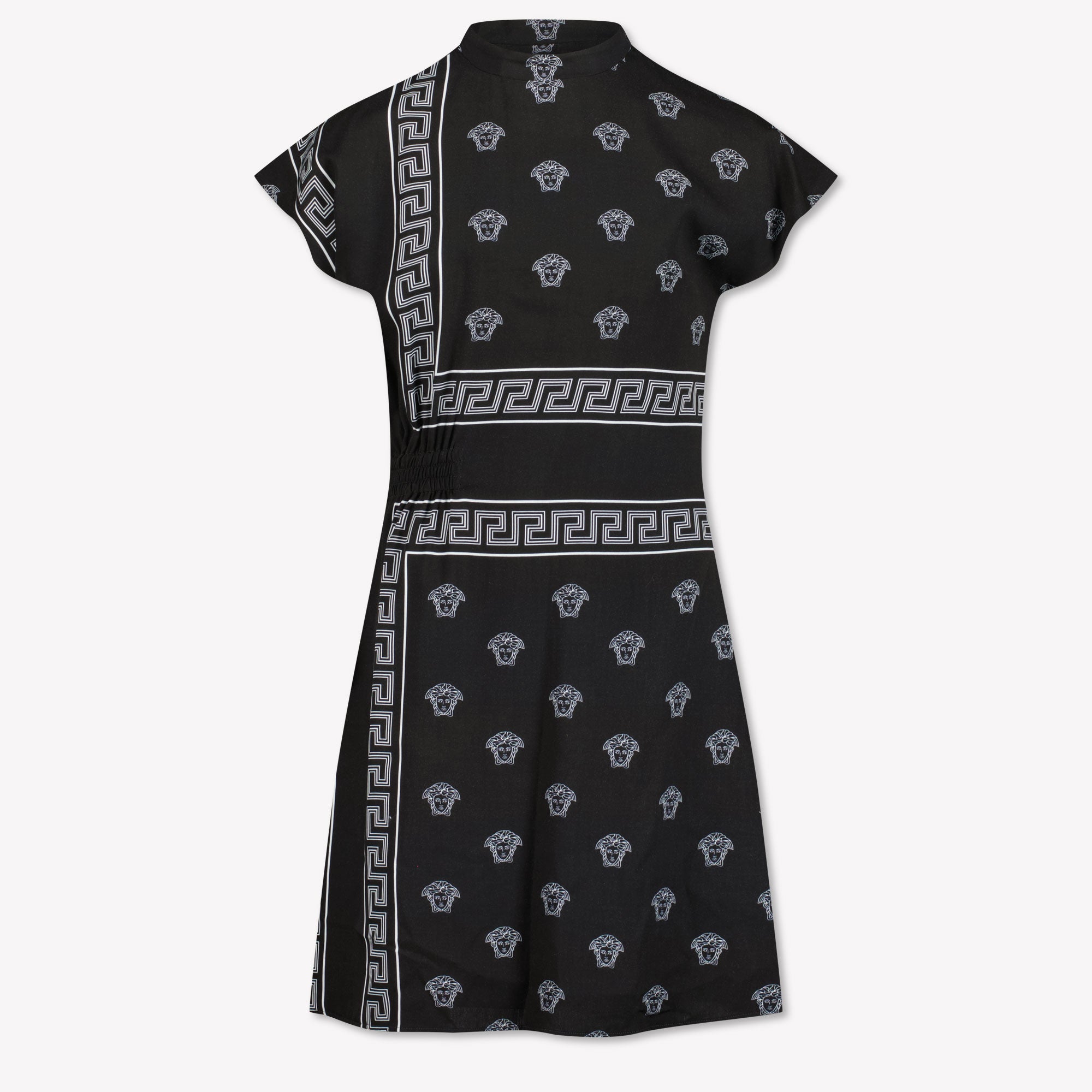 Entdecken Sie die raffinierte Eleganz dieses Exemplars Versace Kinderkleid, perfekt für Ihre kleine Fashionista. Das Ikonische SchwarzDas weiße Design strahlt zeitlose Klasse aus, während die elastischen Seiteneinsätze für eine bequeme Passform sorgen. ✨