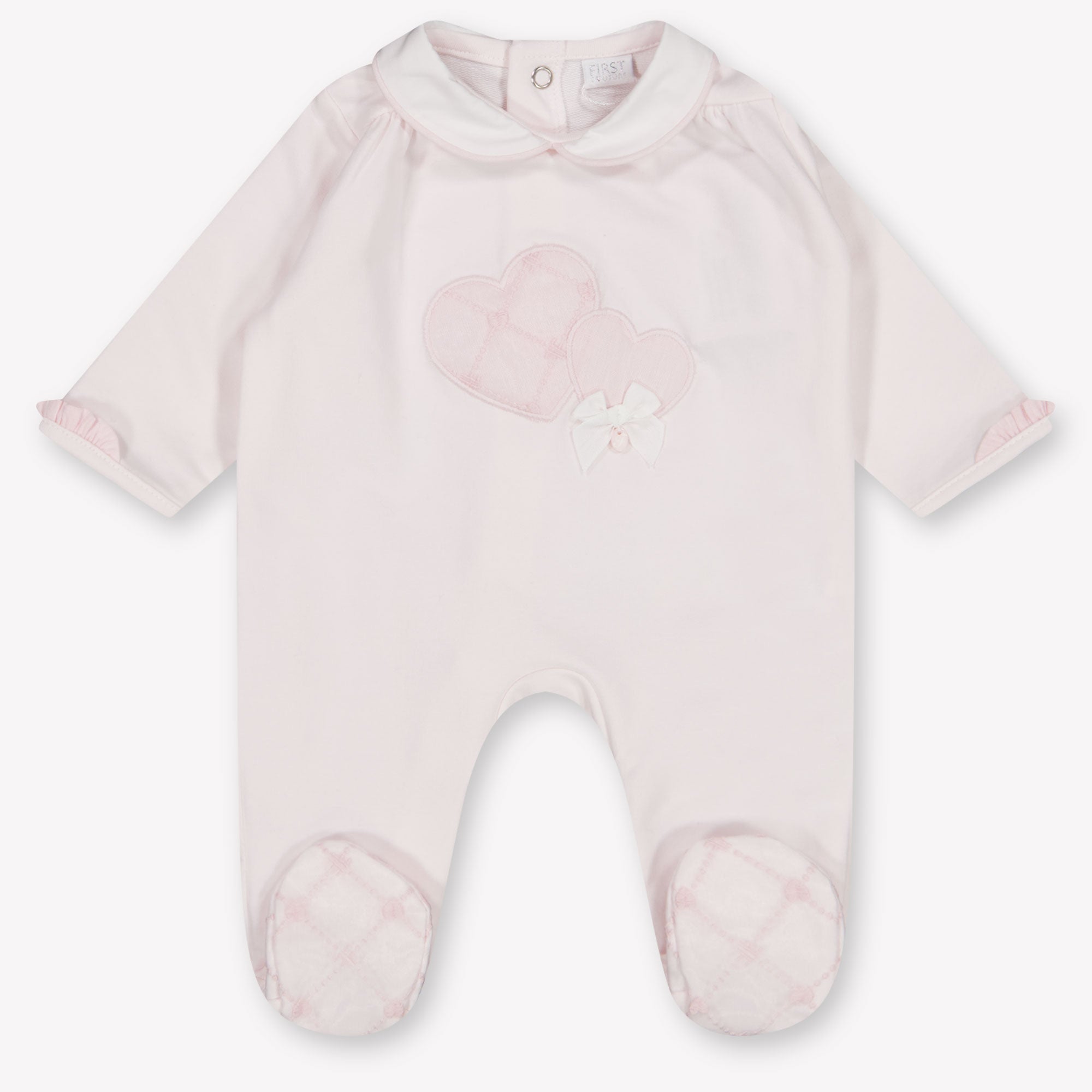 Omhul jouw kleintje in pure zachtheid met dit verfijnde lichtroze boxpakje van First 💕 De zachte stof voelt heerlijk aan op de gevoelige babyhuid, terwijl het subtiele hartjesdesign een romantische, tijdloze uitstraling geeft. Dankzij de comfortabele pasvorm en praktische sluiting is dit pakje even mooi als functioneel — perfect voor iedere dag én bijzondere momenten.