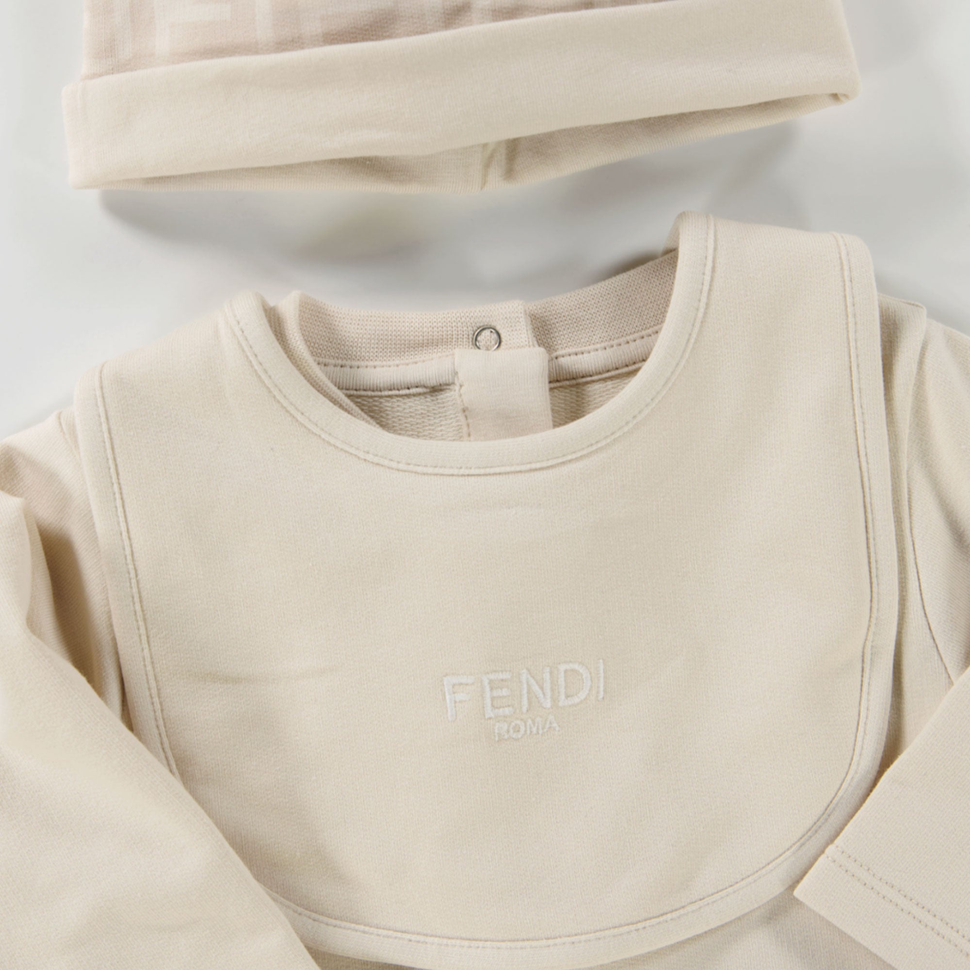 Discover ultimate sophistication with it Fendi Baby Unisex Playsuit in an elegant Beige tint. Made from the softest materials, this offers Playsuit unparalleled comfort for your little one. The iconic Fendilogo, subtly incorporated into the fabric, adds a touch of exclusivity. Thanks to the perfect fit, your baby will feel free and stylish, whether for a special occasion or an everyday luxury. 🌟