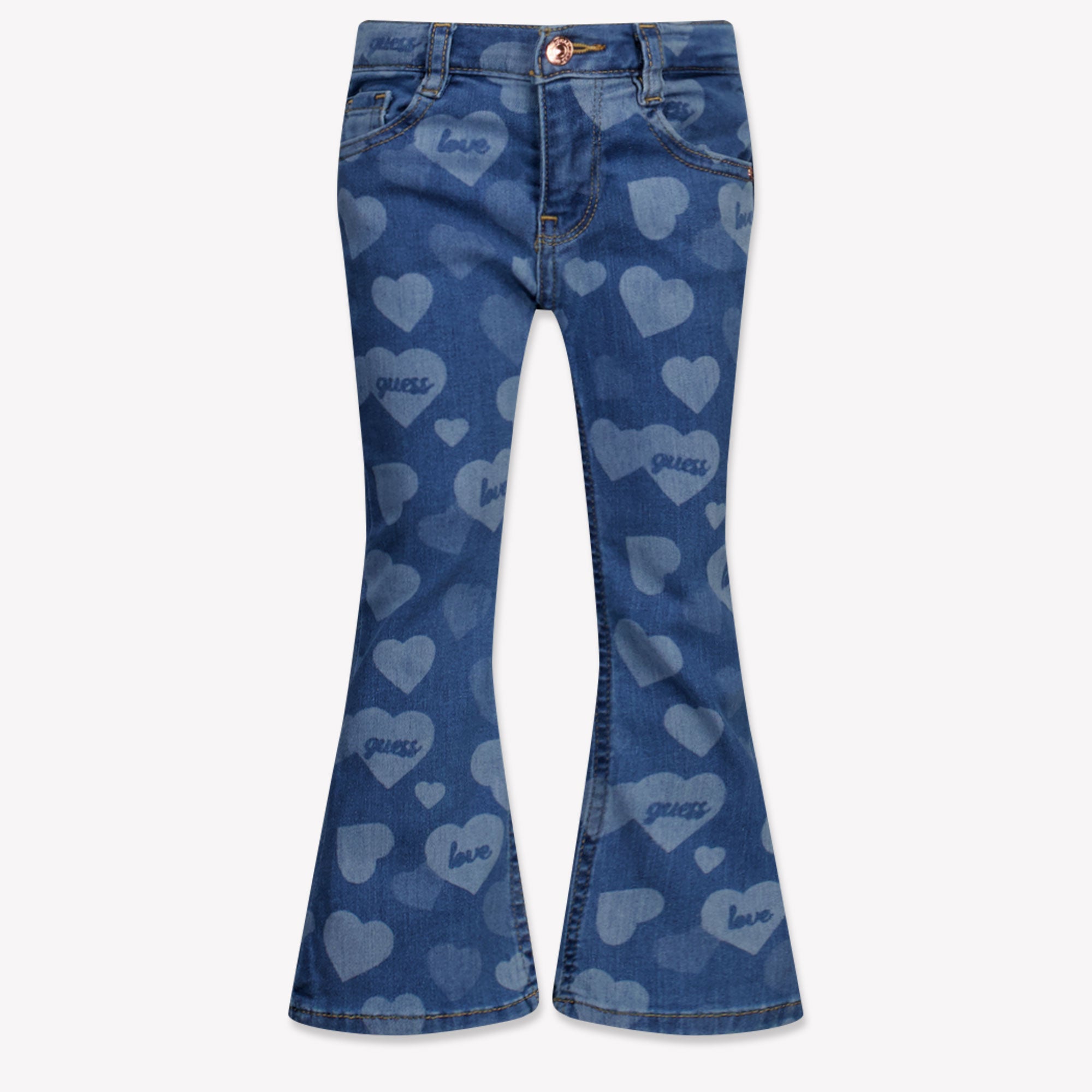 Discover the refined charm of the Guess Kids Girls Jeans in Blue. This one Jeans combines playful flair with timeless elegance thanks to the unique heart design. Made from high-quality denim, it offers a comfortable and flattering fit for your little fashionista.