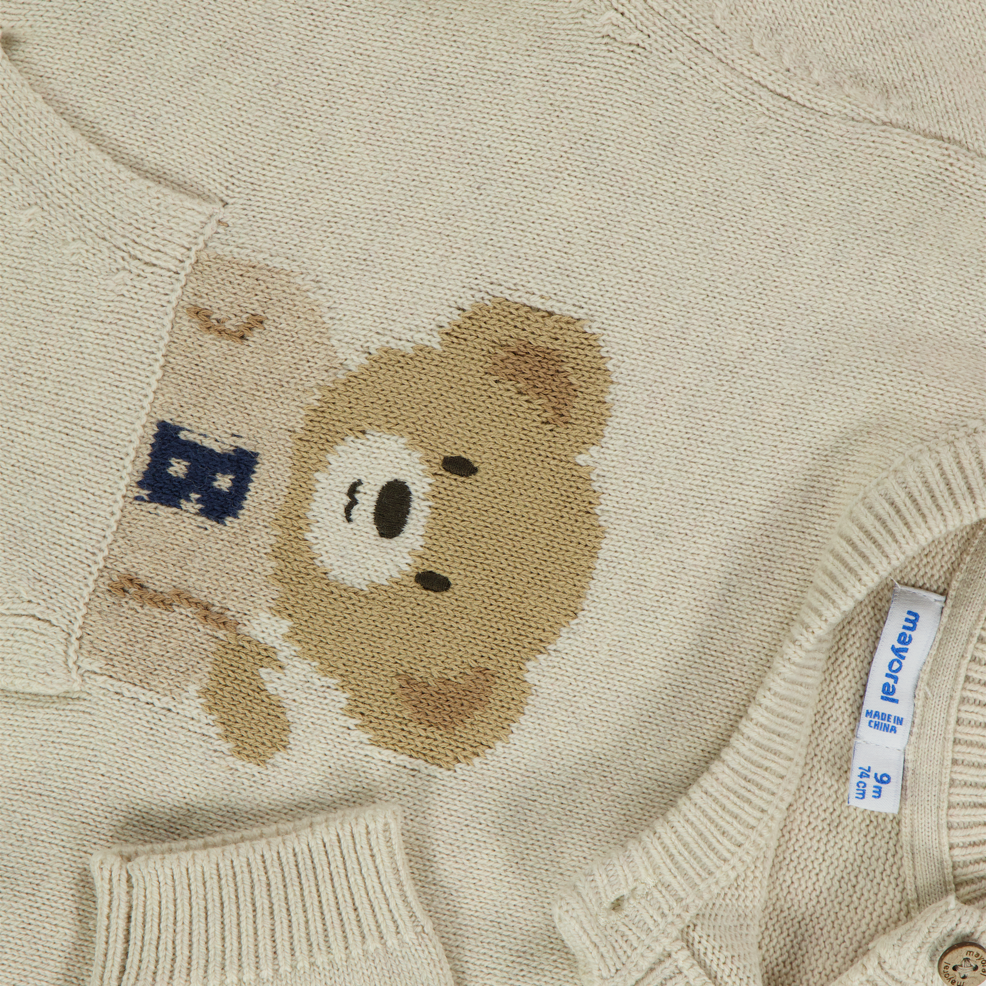 Embrace the softness of luxury with this beautiful Mayoral sweater in a refined Beige tint. The cute bear application and the handy kangaroo pocket make this sweater an irresistible choice for your little one. 🌟